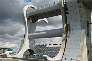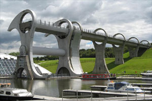 隨著科技的發(fā)展,許多技術(shù)與藝術(shù)的結(jié)合品一件件誕生。其中一個(gè)就位于英國,稱為世界十大升降機(jī)之一。佛斯與克萊德運(yùn)河動(dòng)工于1768年,1777年時(shí)她接通了西岸的蘇格蘭第一大城格拉斯哥(Glasgow)與東部佛斯灣(Firth of Forth)的港口城市格蘭茅斯(Grangemouth)。13年后,從格拉斯哥往西到克萊德灣(Firth of Clyde)的水道也完工了。于是,61公里長的佛斯與克萊德運(yùn)河成了世界上第一條連接兩個(gè)海洋的運(yùn)河航道。1818年到1822年間,51公里長的聯(lián)合運(yùn)河也建成了。聯(lián)合運(yùn)河沿著地勢(shì)平坦前行的等高線運(yùn)河。然而,兩條運(yùn)河在福爾柯克匯合之前,還得克服35米的高度落差。當(dāng)年工程師們用了11個(gè)水閘來解決這問題。