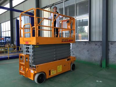 自行剪叉式液壓升降機具有自動行走功能,能夠在不同工作狀態(tài)下,不需外接電源,不需外來動力牽引即可升降自如,而設(shè)備的行走轉(zhuǎn)向也只需一人便可完成。操作人員只需掌握好設(shè)備前的控制手柄即可完成設(shè)備前進、后退、轉(zhuǎn)向、快、慢速行走和上下等動作。自行剪叉式升降機移動靈活,操作方便、省工、省力令高空作業(yè)更方便快捷,是現(xiàn)代企業(yè)高效安全生產(chǎn)之理想高空作業(yè)設(shè)備。