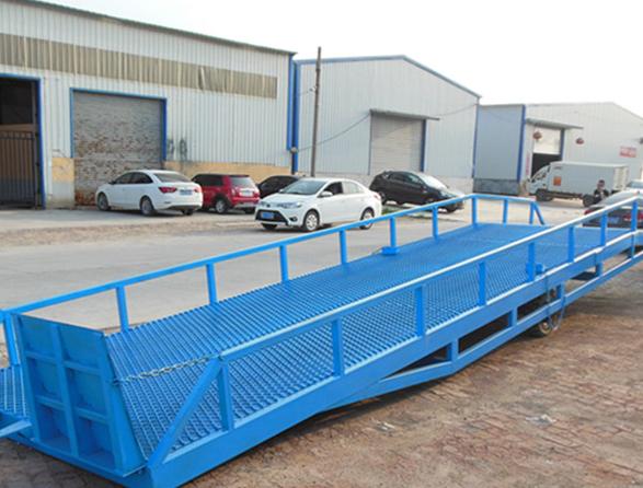 登車橋是用于叉車與貨車之間的搭橋設(shè)備,方便裝卸貨物。最大動負載:6T ,最大靜負載:6T ,最大寬度:2M ,最大長度:4M。分類很多,一般分為移動登車橋和固定登車橋。常規(guī):長度11M,寬度2.1M實心輪胎。