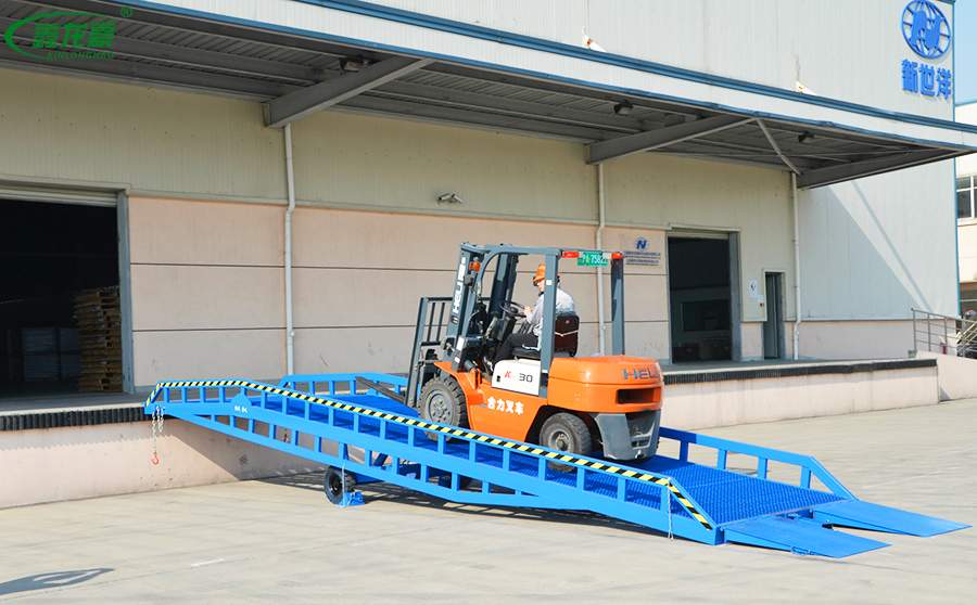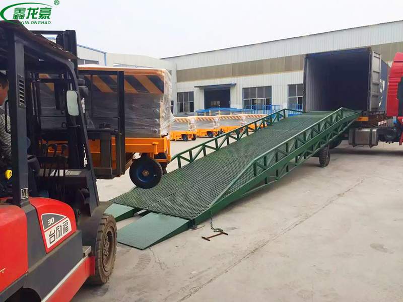 移動(dòng)式液壓登車(chē)橋主要用于無(wú)裝卸設(shè)備的貨臺(tái)及流動(dòng)裝卸場(chǎng)所,可與叉車(chē)配合使用,是貨物裝卸專(zhuān)用輔助設(shè)備。產(chǎn)品可達(dá)到的高度為1.1米至1.8米,可以根據(jù)貨車(chē)高度進(jìn)行調(diào)節(jié),是裝卸貨物不可缺少的升降液壓設(shè)備之一。移動(dòng)式液壓登車(chē)橋的主要作用是在地平面與車(chē)廂之間搭起一座橋,有了它,叉車(chē)能直接從地面攜帶貨物駛?cè)肫?chē)車(chē)廂內(nèi)部,進(jìn)行批量裝卸作業(yè)。使用時(shí)前板架在貨車(chē)車(chē)廂上,起到承載重量的作用,減少了貨物重量對(duì)液壓設(shè)備的壓力,保證了液壓登車(chē)橋的使用壽命,從而達(dá)到長(zhǎng)期使用的目的。借助液壓登車(chē)橋,叉車(chē)能直接駛?cè)肫?chē)集裝箱內(nèi)部進(jìn)行批量裝卸作業(yè)。