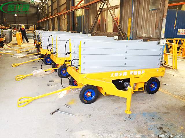 移動剪叉式升降平臺主要技術特點:臺面鋼板折彎、底架及剪叉結構山鋼定做高強度矩形管材; 標準冷彎槽做道軌,使用尼龍滑塊做導軌輪,接觸面大,升降平穩(wěn),晃動小;液壓油缸 內(nèi)置防爆閥(防止油管斷裂,平臺失速下降),采用進口密封圈,經(jīng)久耐用,不泄露;雙層鋼網(wǎng)高壓油管;升降機專用液壓泵站,加裝應急下降閥,平臺斷電可手動控制 下降,內(nèi)置溢流閥,可防止上行運動時系統(tǒng)壓力過高,起到超載保護功能;充氣橡膠輪胎; 電路電器、接觸器羅列連接,加裝熱過載保護,缺相保護等安全保護功能;電動上、下電動控制,控制按鈕盒加裝急停按鈕,以保障財產(chǎn)及人身安全,各操作部分使用24V安全控制電壓;軸銷圓鋼配做,調質處理;拋丸、噴砂 除銹處理,除去鋼結構構件表面的銹蝕及焊接飛濺,能使鋼構件表面產(chǎn)生一定程度的凹凸不平的效果,增大粉末的附著力;使用靜電粉末噴涂;涂層外觀質量優(yōu)異,附著力及機械強度強,色澤亮度高,經(jīng)久不褪色。